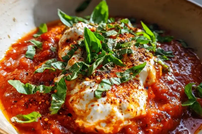 - Serve and Garnish: Taste and adjust seasonings in the sauce. Ladle the hot sauce into bowls, dollop generously with the creamy feta swirl, and garnish with fresh basil and smoked paprika before serving.