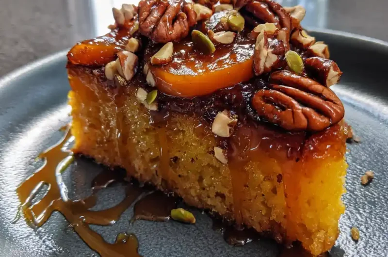 - Final Flourish: Drizzle any remaining caramel swirl over the top of the inverted cake. Scatter the remaining praline pieces and the toasted pumpkin seeds (tossed with 1 tsp of brown sugar for extra flavor and crunch) over the caramel.