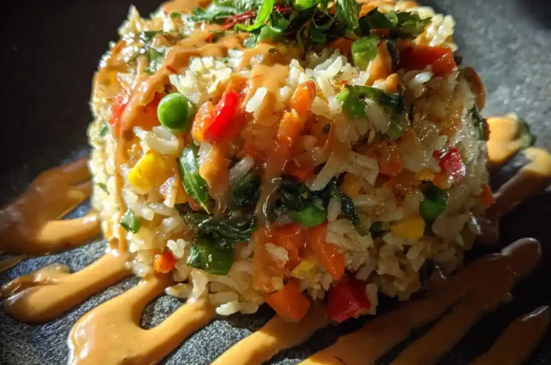 I always find myself reaching for this recipe when I need a quick, flavorful dinner that feels truly special. This vegetable fried rice recipe indian brings a vibrant twist to a classic weeknight staple, creating a beautiful aroma as the spices toast. We’re using everyday spices and fresh vegetables to create a vibrant dish that feels elevated yet simple enough for a weeknight. It’s the perfect way to use up leftover rice and clear out your vegetable crisper. The real magic here is the silky saffron-coconut cream drizzle, adding a layer of luxurious flavor that makes this dish truly special. This recipe is naturally vegetarian and can be made fully vegan, making it a wonderful family-friendly choice.