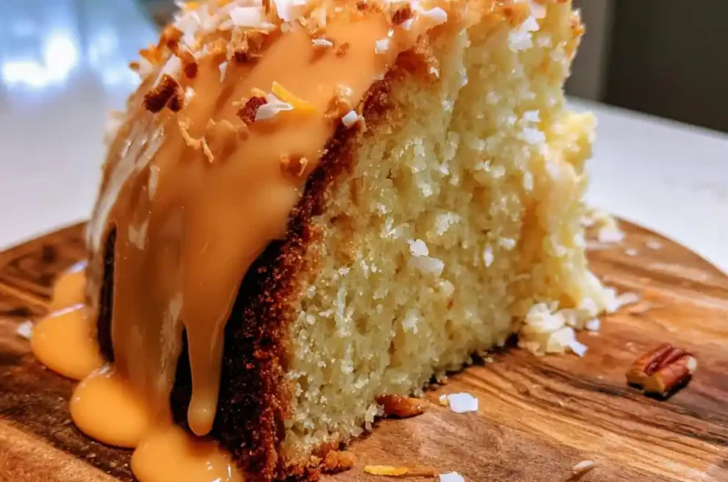 Indulge in a classic White German Chocolate Cake with a luscious coconut pecan filling and a bright orange glaze. This recipe delivers a moist, tender cake perfect for celebrations or a sweet treat.